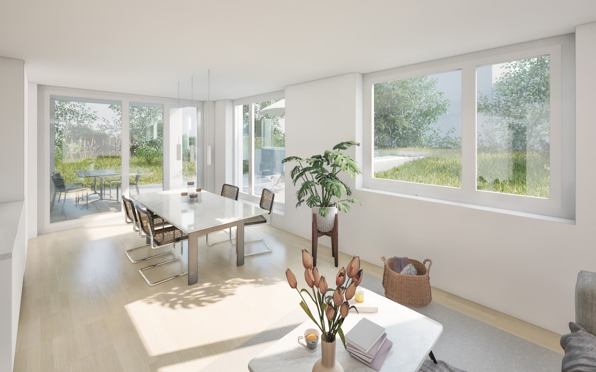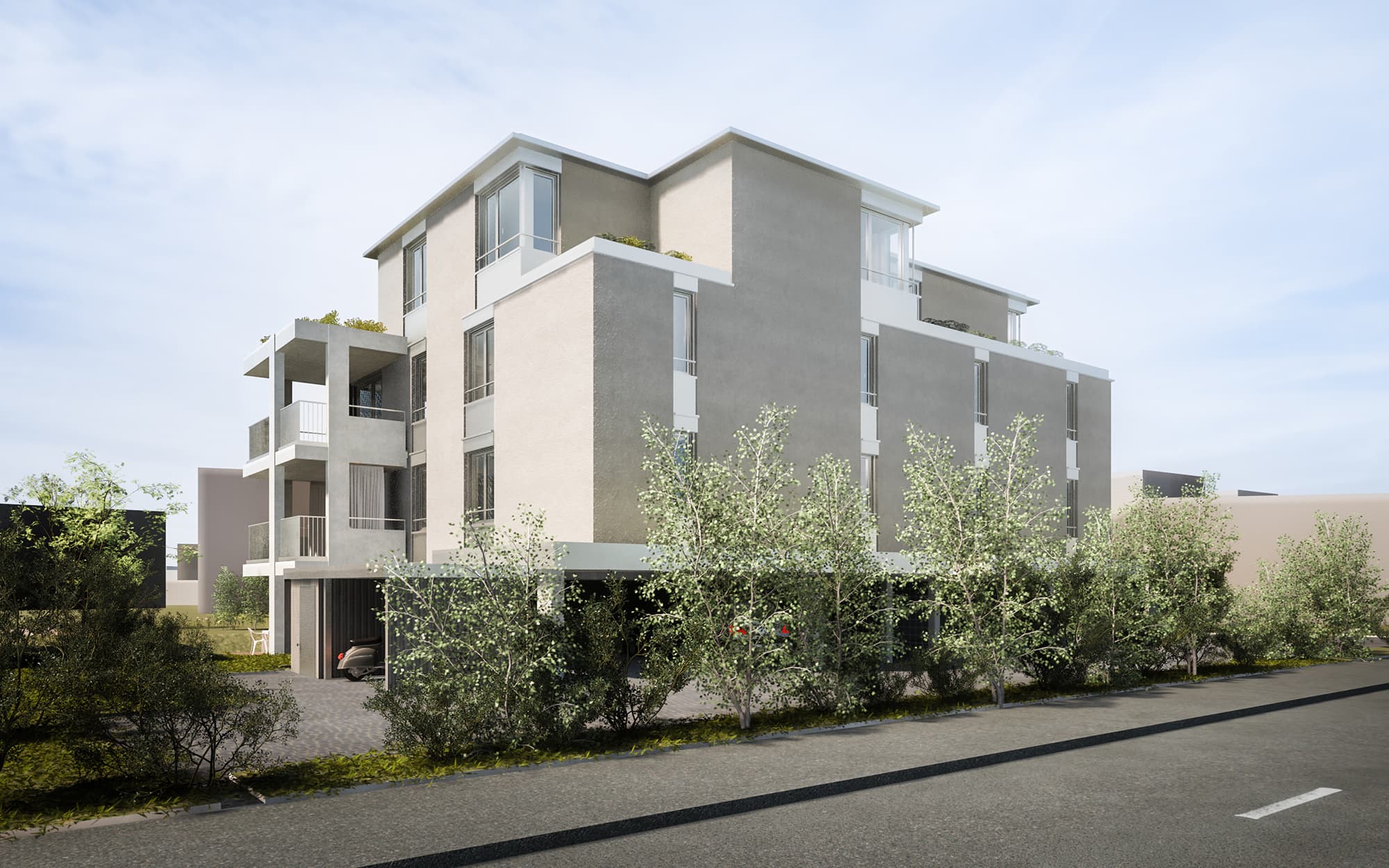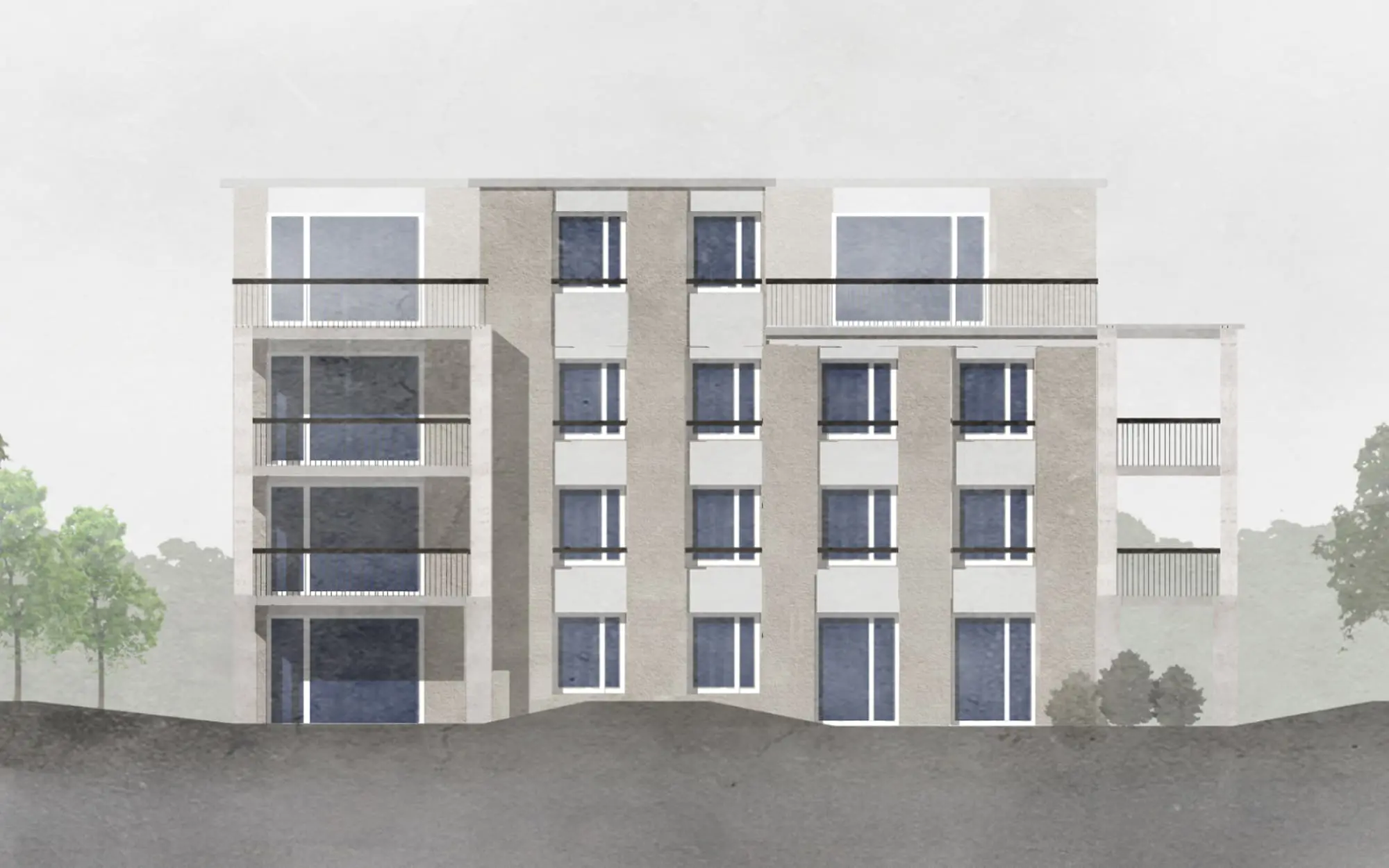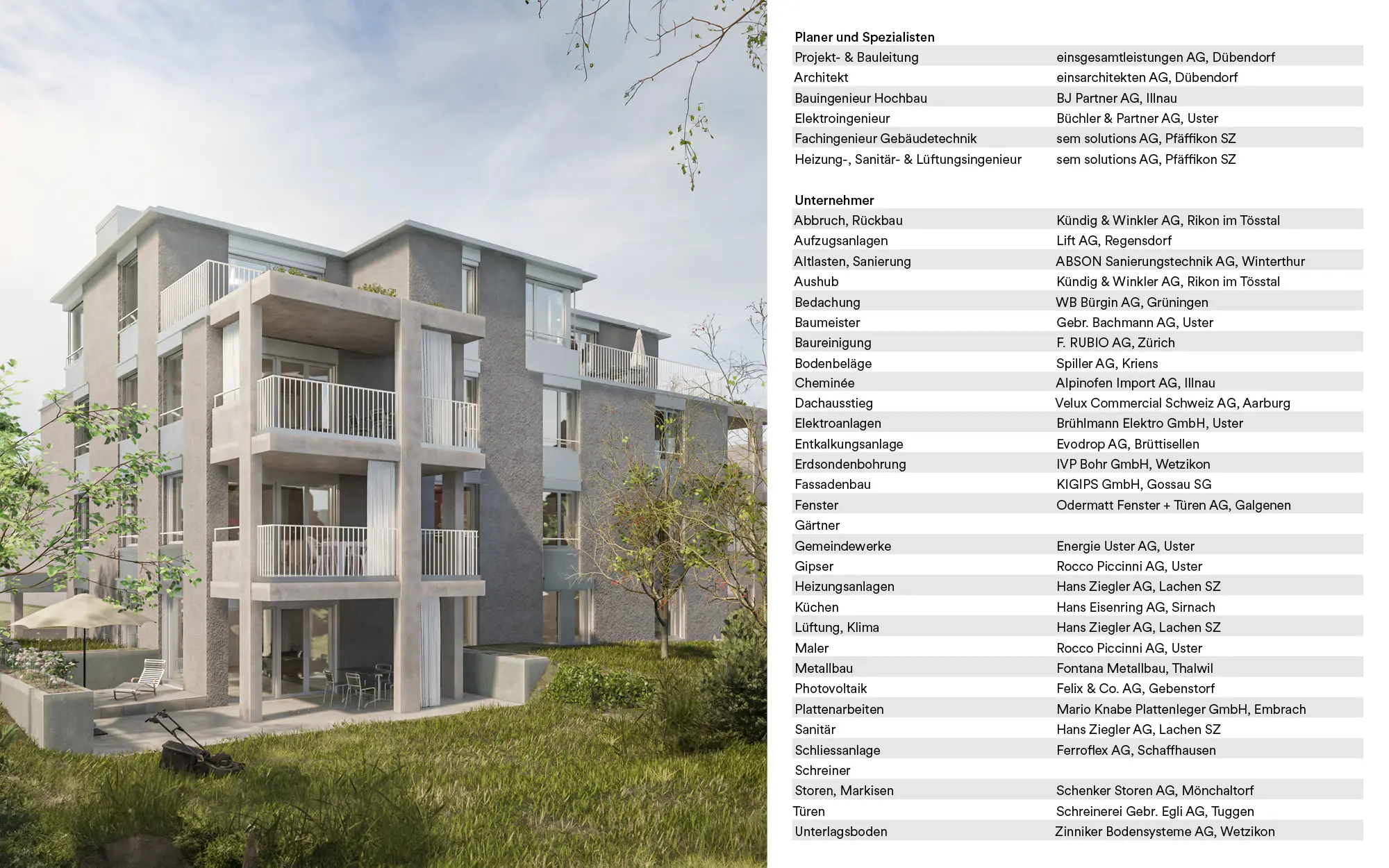 Im Zusammenhang mit bedeutenden öffentlichen Gebäuden, der Schulanlage Krämeracker und dem Berufsschulzentrum Uster, präsentiert sich dieses sorgfältig gestaltete Wohngebäude als bewusst mural materialisierte und markante Stadtfigur. Die Materialisierung und städtebauliche Stellung sucht die Verbindung zu den älteren Schulgebäuden entlang der Krämerackerstrasse. Die etwas offenere und mit Balkontürmen gegliederte Gartenfassade kommuniziert mit den kleinteiligeren Wohnbauten und durchgrünten Aussenräume der direkten Nachbarschaft. Die Wohnungen selbst überzeugen durch ihre vielfältige und zugleich kompakte Formulierung, während sie von einem gemeinschaftlich genutzten, ruhigen Grünraum im Südwesten profitieren. Der private und gemeinschaftliche Grünraum im Südwesten trägt dazu bei, eine angenehme Wohnqualität zu schaffen und fördert die Interaktion unter den Bewohnern. Die Fassadenöffnungen sind so konzipiert, dass sie sensibel auf die unterschiedlichen Aussenräume reagieren. Sanfte Profilierungen gliedern die grossflächigen Fassaden in kleinere, harmonische Einheiten.