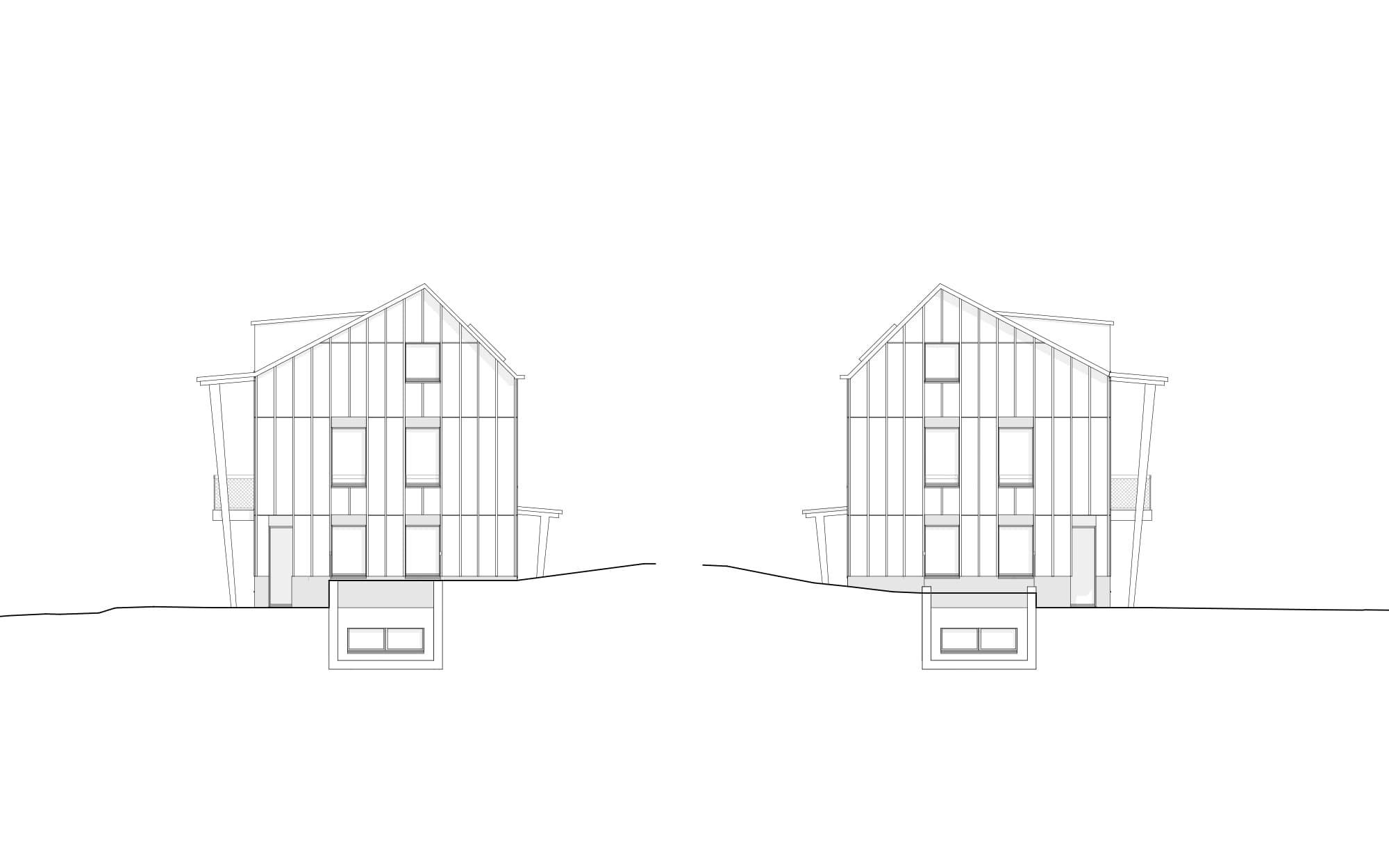 Das Gebäude ist eingebettet in eine Umgebung, die durch strukturierte Grünflächen, locker gesetzte Strauchgruppen und ein klar geführtes Wegsystem geprägt ist. Klar zonierte Sitzplätze, ergänzt durch Blumenwiesen und Pflanzbereiche, vermitteln zwischen gebautem Raum und der umgebenden Landschaft. Der Bau ruht auf einem kräftigen Sockel aus Ortbeton, der sich ab der Erdgeschossdecke in einer präzise gefügten Holzkonstruktion weiter in die Höhe entwickelt. Die Fassade aus vertikaler Holzschalung, gegliedert durch fein rhythmisierte Lisenen, lässt die Konstruktion ablesbar werden und verleiht dem Haus eine ruhige Erscheinung. Großzügig auskragende Vordächer definieren geschützte Schwellenräume zwischen Innen und Außen und formulieren eine einladende Geste. Im Inneren bestimmen sichtbare Fichtenholzflächen und eine sorgfältige Raumgliederung das Bild. Die Grundrisse sind funktional durchdacht, ermöglichen aber gleichzeitig differenzierte Nutzungen und atmosphärische Tiefe. Holzrahmenkonstruktionen und natürliche Materialien erzeugen eine warme, zurückhaltende Wohnlichkeit, unterstützt durch Massivparkettböden, Holztreppen und einfache, haptisch angenehme Oberflächen. Die Gebäudetechnik ist zurückhaltend integriert und auf Langlebigkeit ausgerichtet: Eine zentrale Wärmepumpe mit Erdsonden sowie eine Photovoltaikanlage nach aktuellem Standard sichern eine zeitgemäße, ressourcenschonende Energieversorgung. Die Gesamtkomposition überzeugt durch eine konsequente Verbindung von Gestaltung, Funktion und Nachhaltigkeit – ein stilles, aber ausdrucksstarkes Haus, das sich selbstbewusst und selbstverständlich in seinen Kontext einfügt.