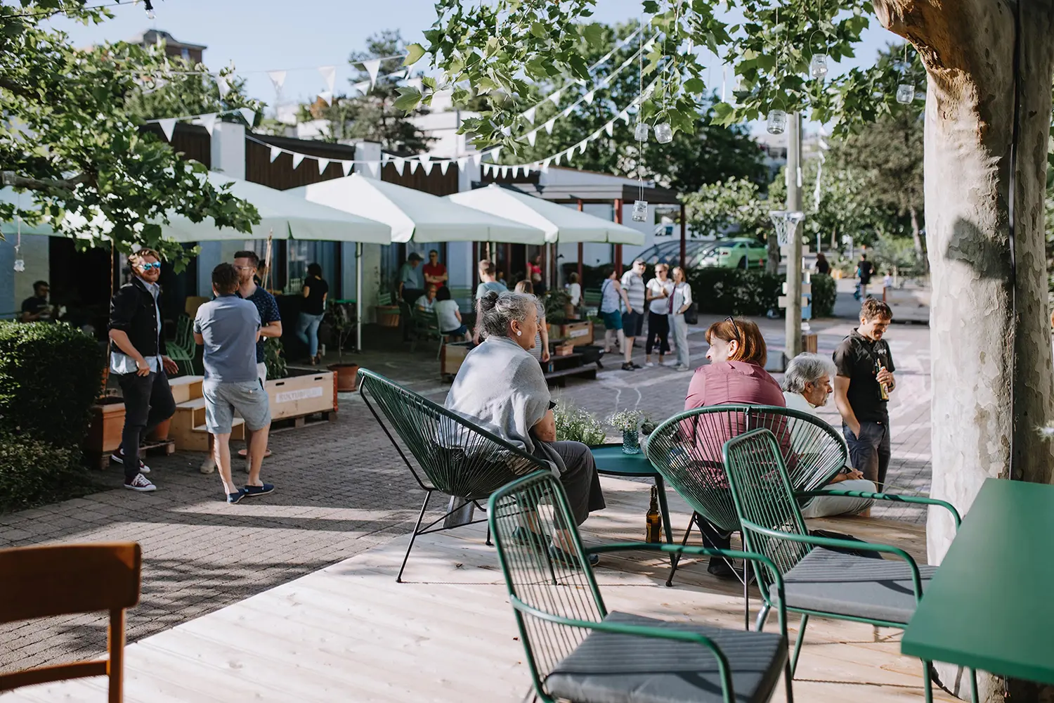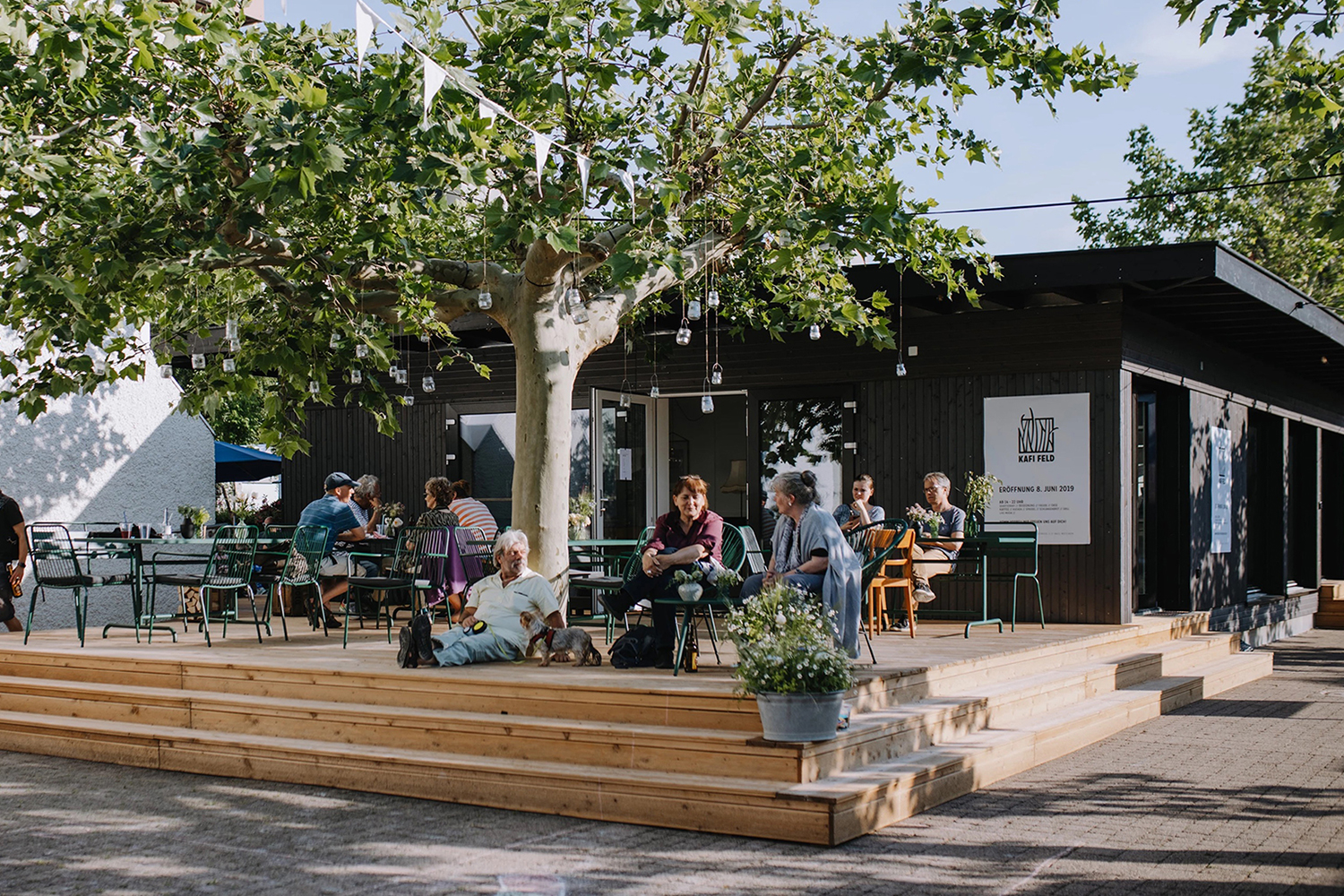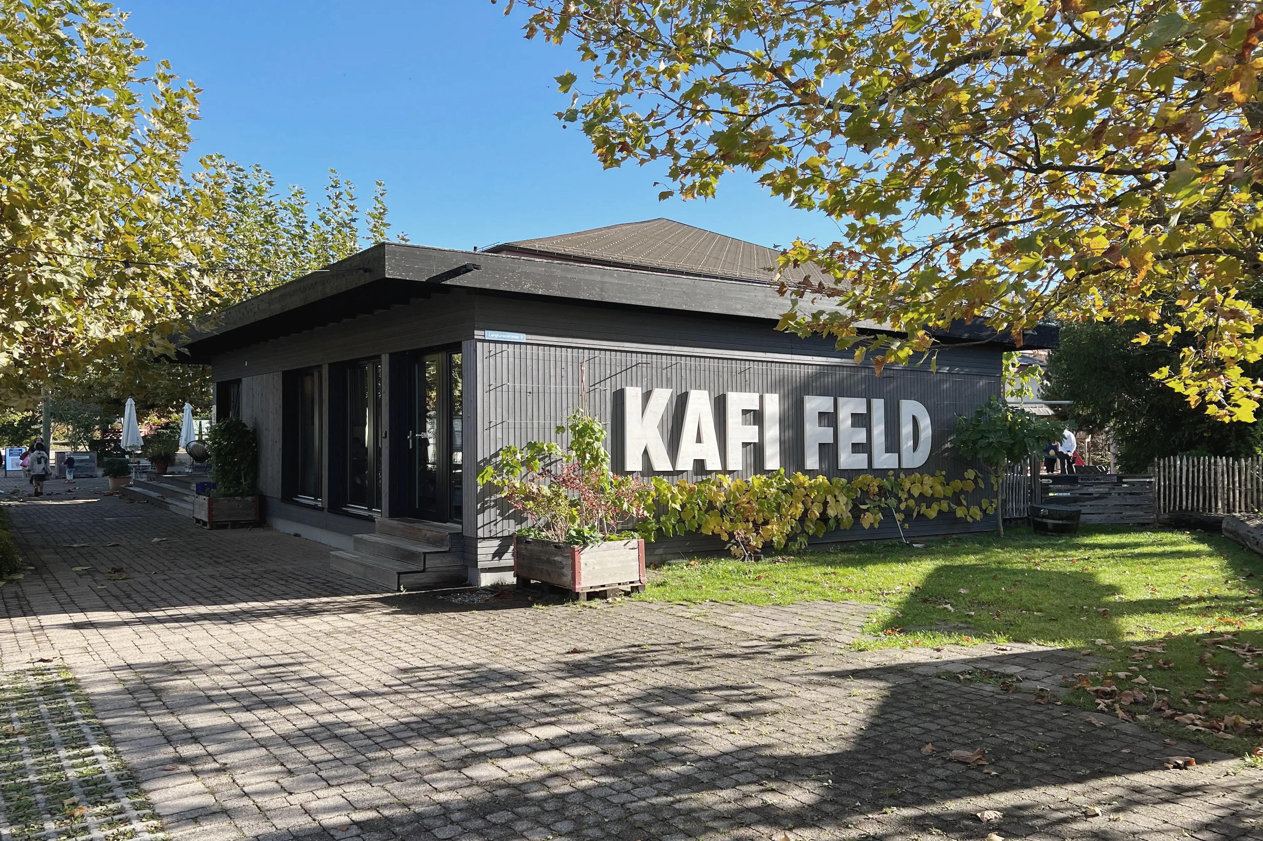 Auf dem Areal der FEG Wetzikon entstand ein temporär Pavillonbau mit einem Café und einer Atelierfläche für Kirchenbüros. Die Büroarbeitsplätze ergänzen den bestehenden Betrieb und das Kafi Feld belebt die Umgebung. Ein einfacher Holzelementbau, dessen Bestandteile nach einem Rückbau wiederverwendet werden können, wurde ohne Tiefbaumassnahmen auf den bestehenden Boden gestellt.