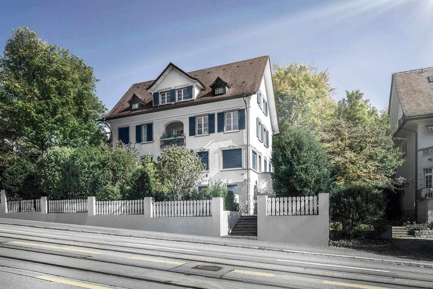 Nachdem 1914 das Einfamilienhaus an der Kraftstrasse 28 in Zürich-Fluntern im romantischen Heimatstil von Architekt Armin Witmer-Karrer erbaut und 1950 durch Dr. Adolf Guggenbühl zu einem Appartment- und Geschäftshaus umgebaut wurde, steht die Liegenschaft inklusive Gartenanlage unter Denkmalschutz. Unter Beibehaltung der Grundstruktur (Erschliessung, Primärkonstruktion) und äusseren Erscheinung wurde das Gebäude 2016 in 8 Wohnungen umgebaut. Zwei Studios im Untergeschoss, zwei 3-Zimmer Wohnungen und vier 2.5-Zimmer Wohnungen in den oberen Geschossen bieten einer städtischen Zielgruppe qualitativen Wohnraum an zentraler Lage. Die Materialisierungen und Ausbaumassnahmen sind angemessen und zurückhaltend gewählt, um den historischen Charakter zu erhalten.